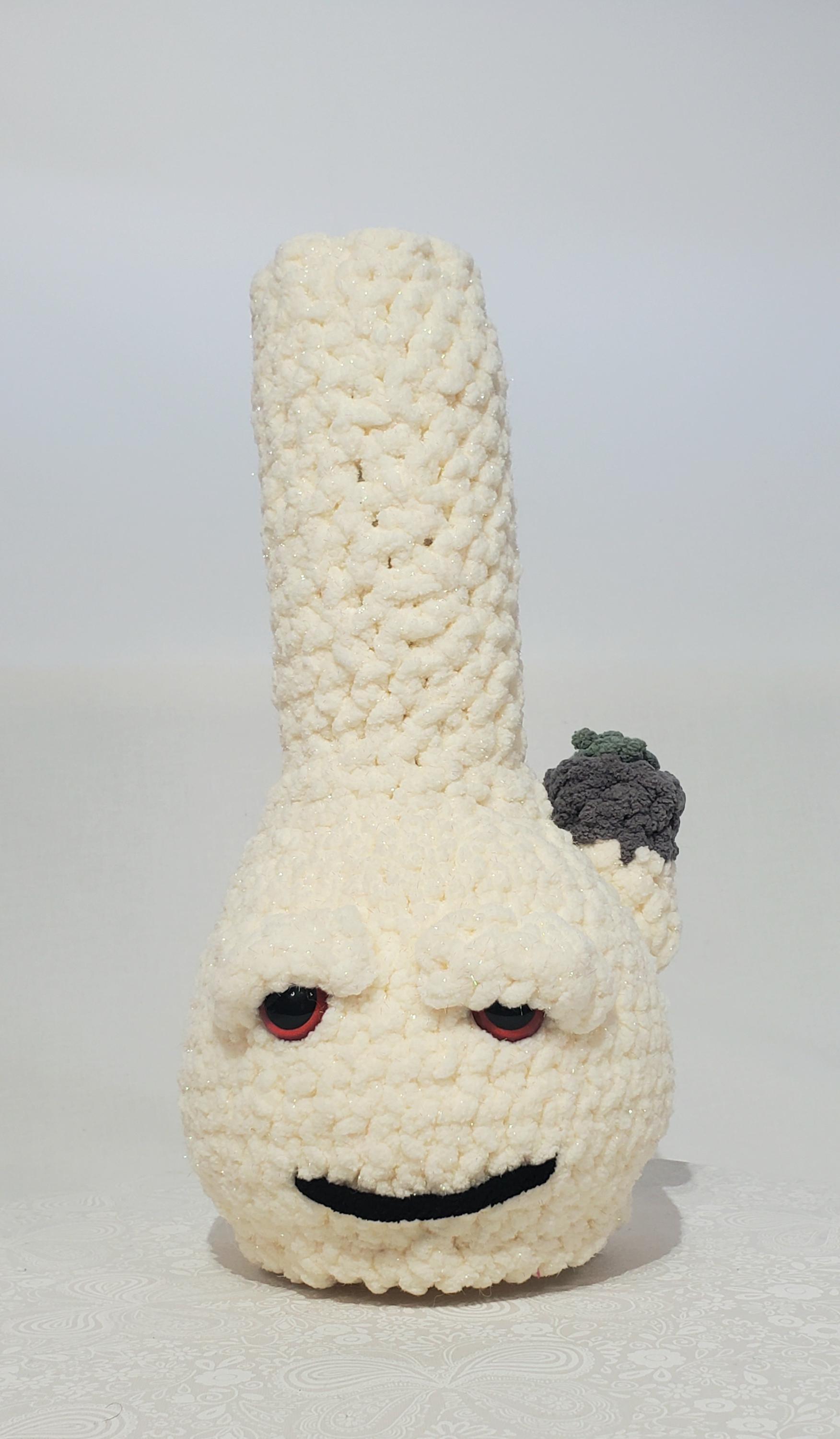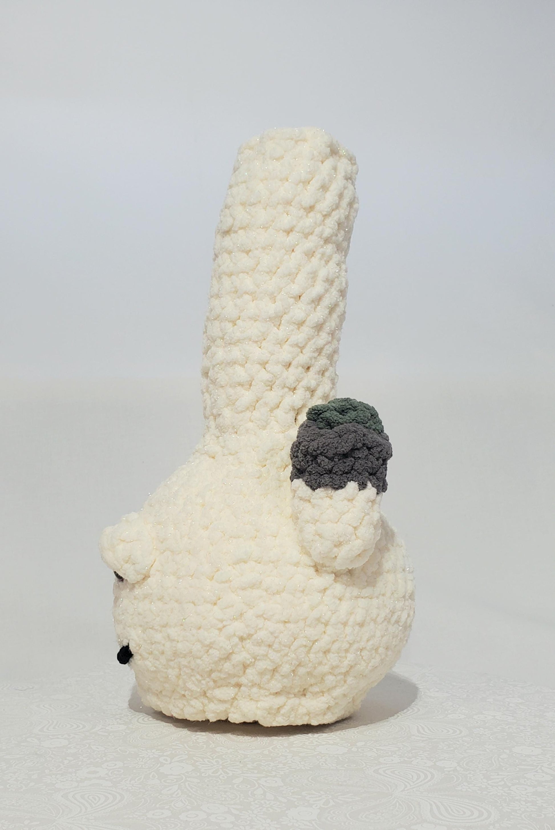 Crochet Bong, Sparkle white, made with 100% polyester, soft blanket yarn, and safety eyes, approx. 12" x 5", 11 oz