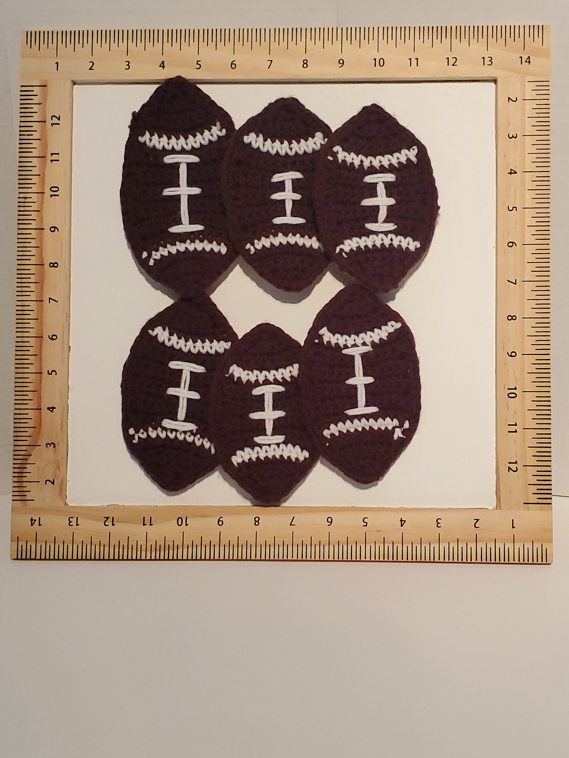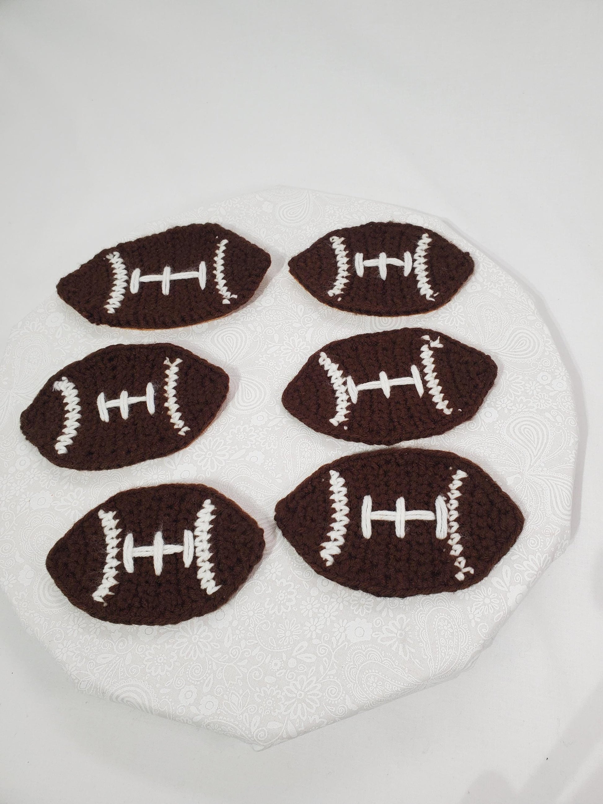 Crochet Football Coasters with Cork backing, made with acrylic yarn, set of 6