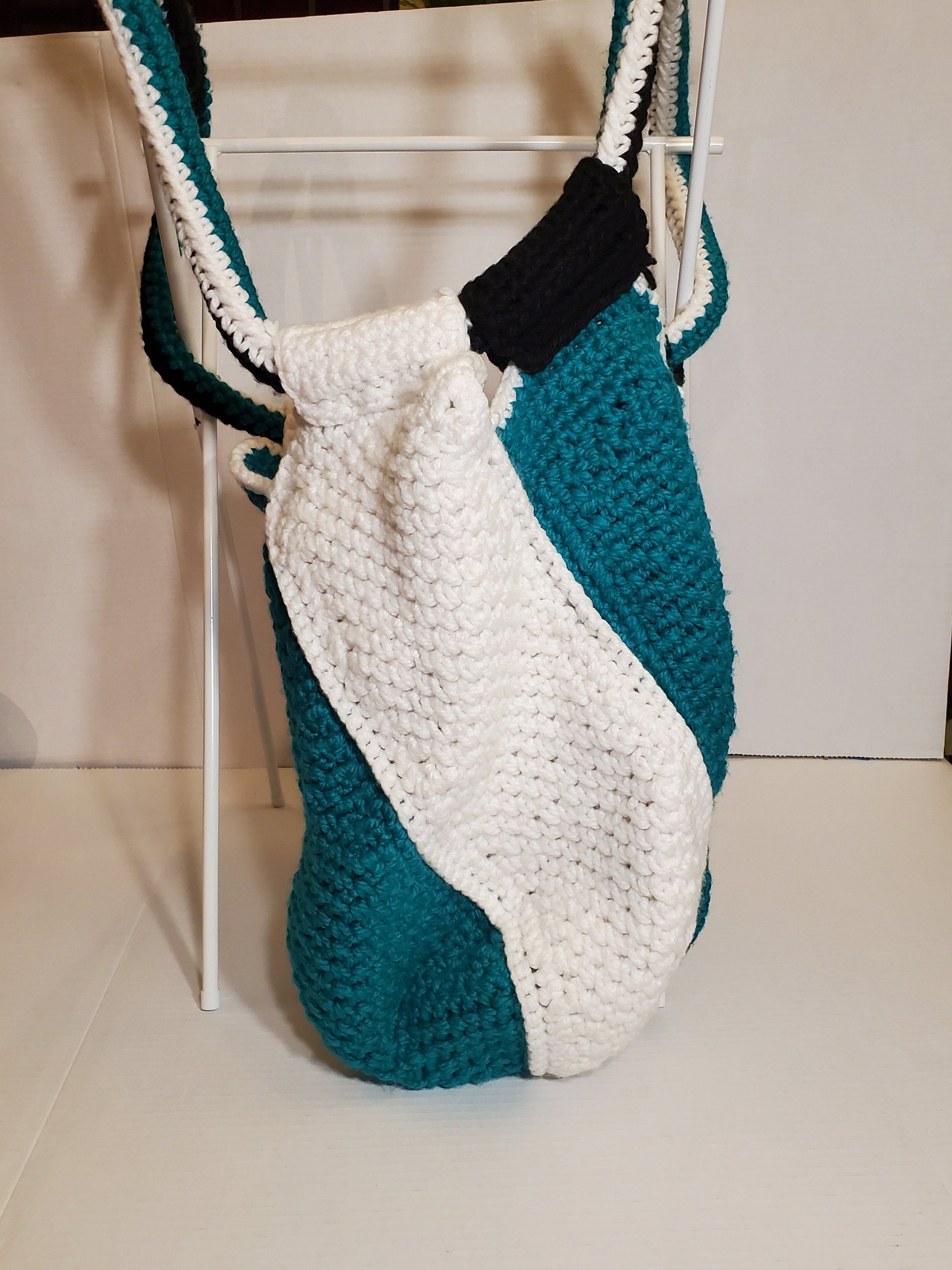 Crochet Tote, Teal, Black and White, 16" Tall 28" Around, Made With 100% Chunky Acrylic Yarn