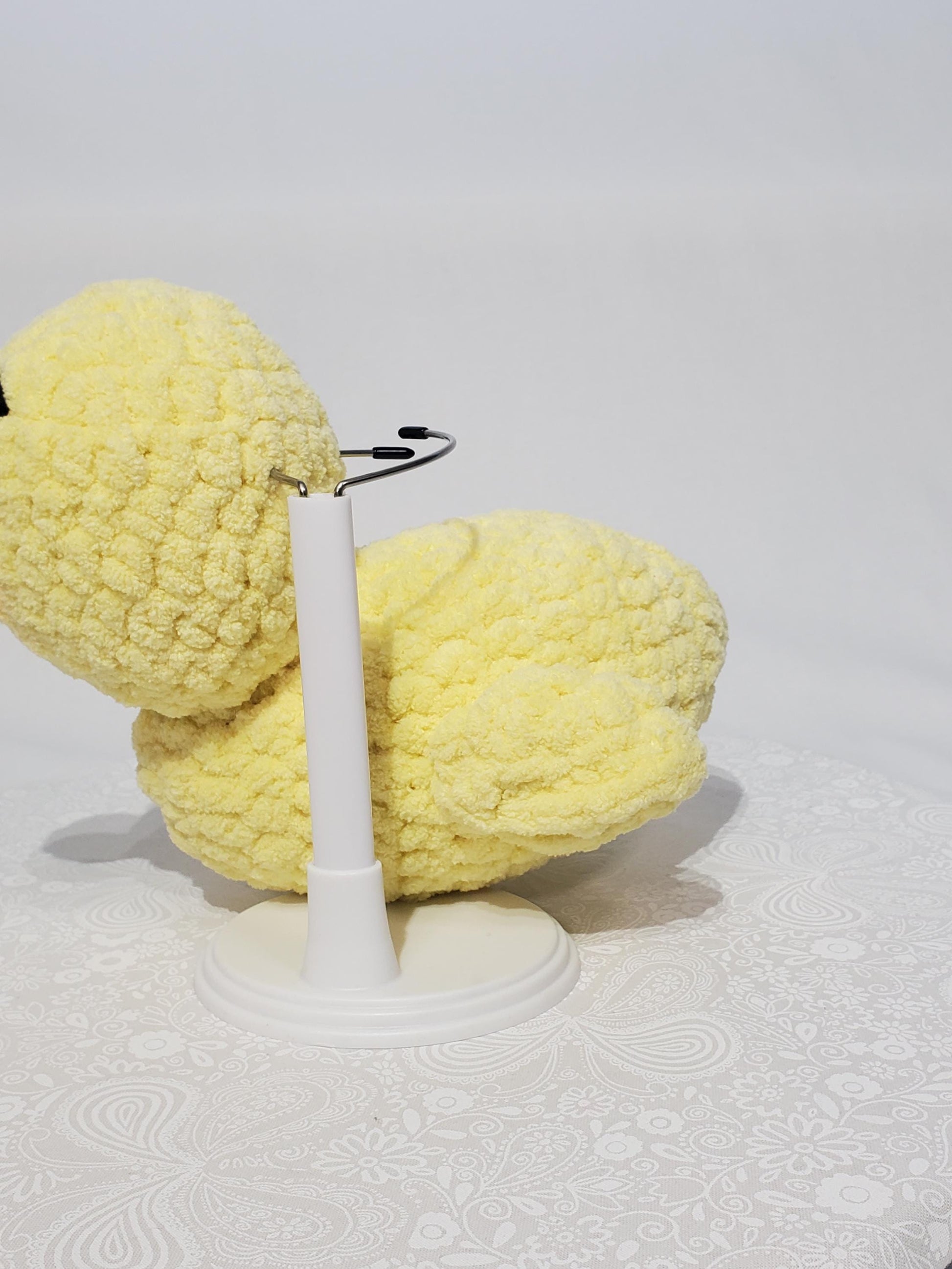 Crochet stuffed animal duck yellow, made with soft blanket yarn (100% Polyester) and safety eyes, approximately 7 in x 9 in