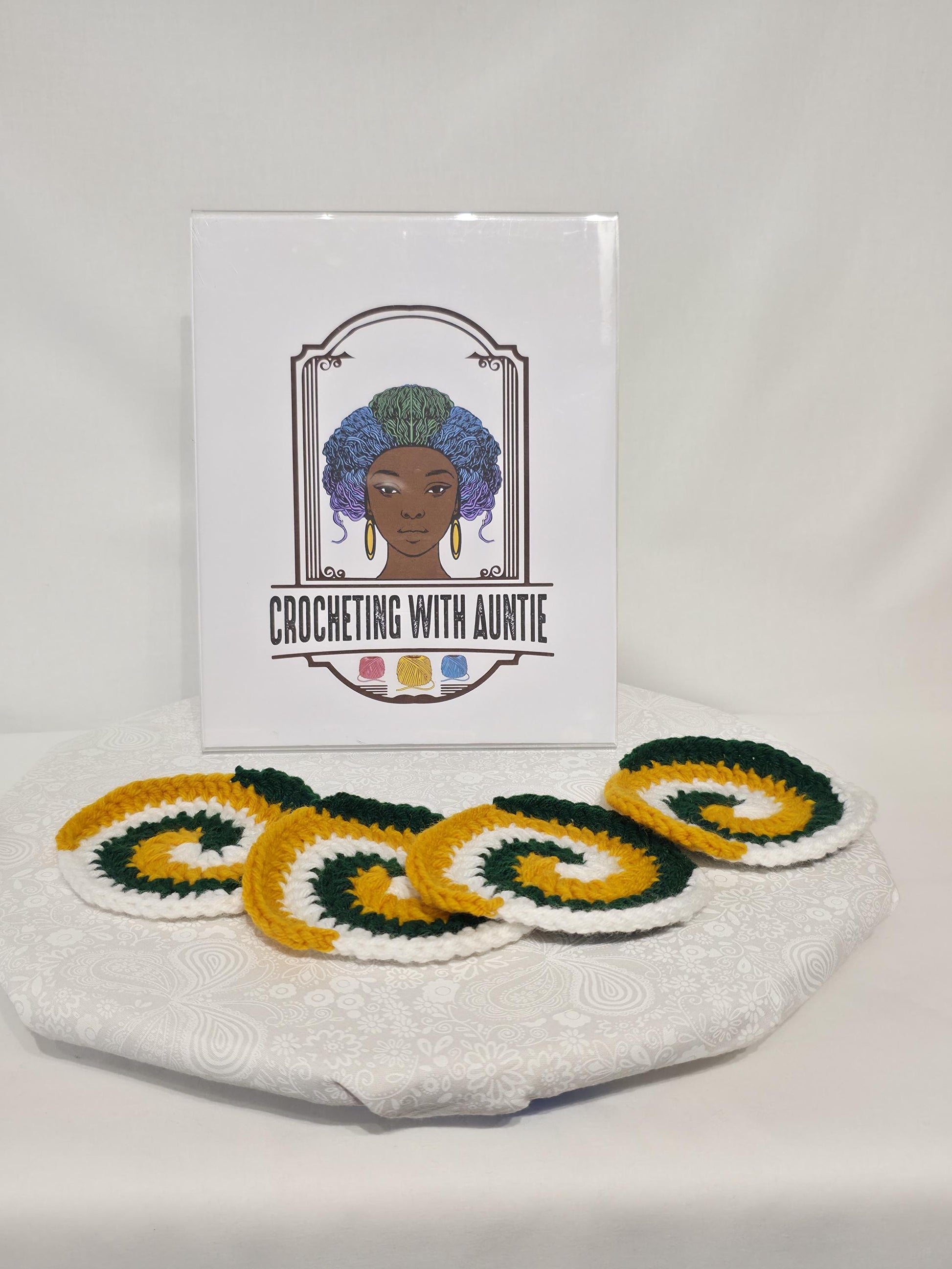 Green Bay Packers Inspired Coaster Set, made with Acrylic Yarn