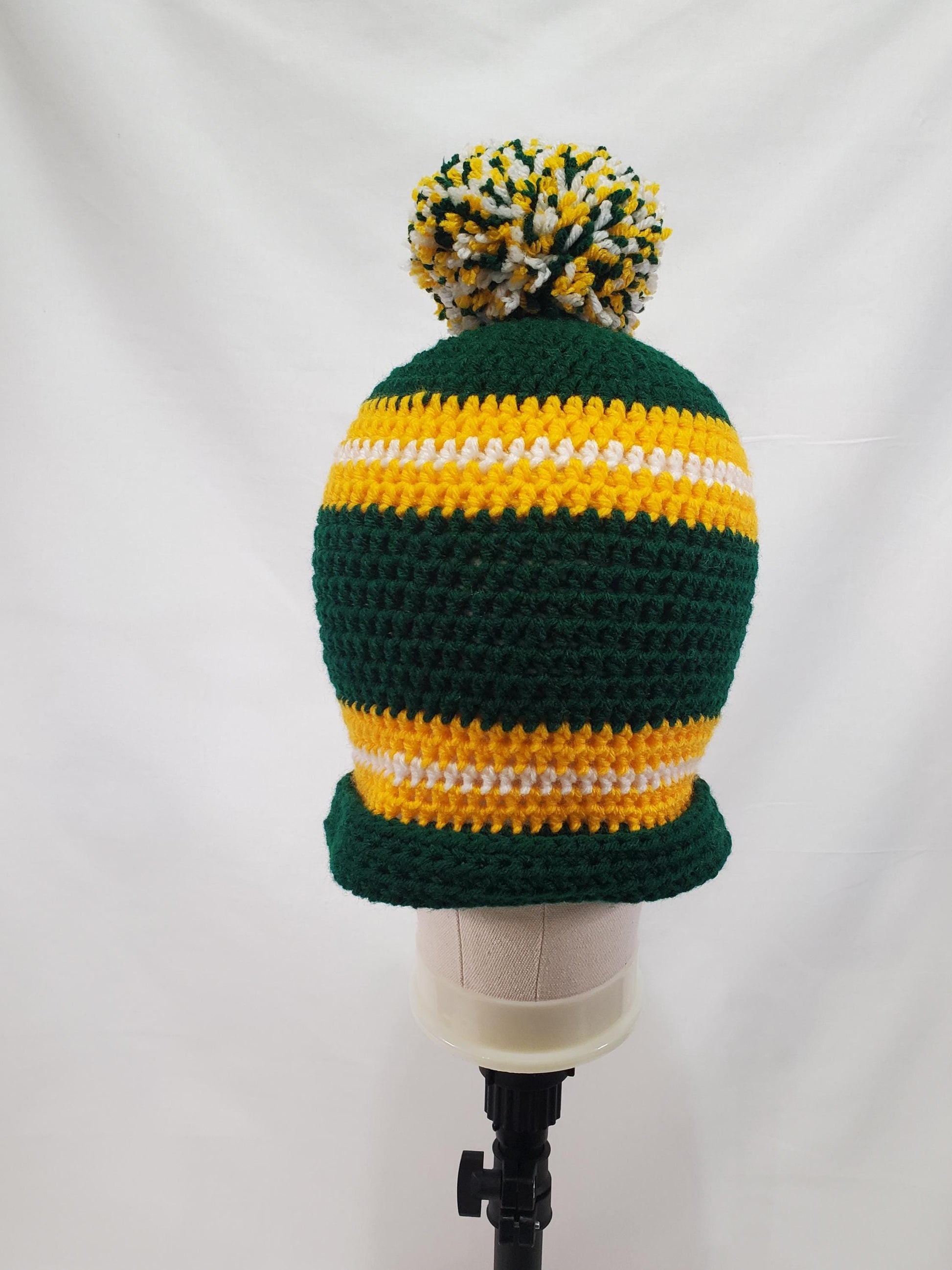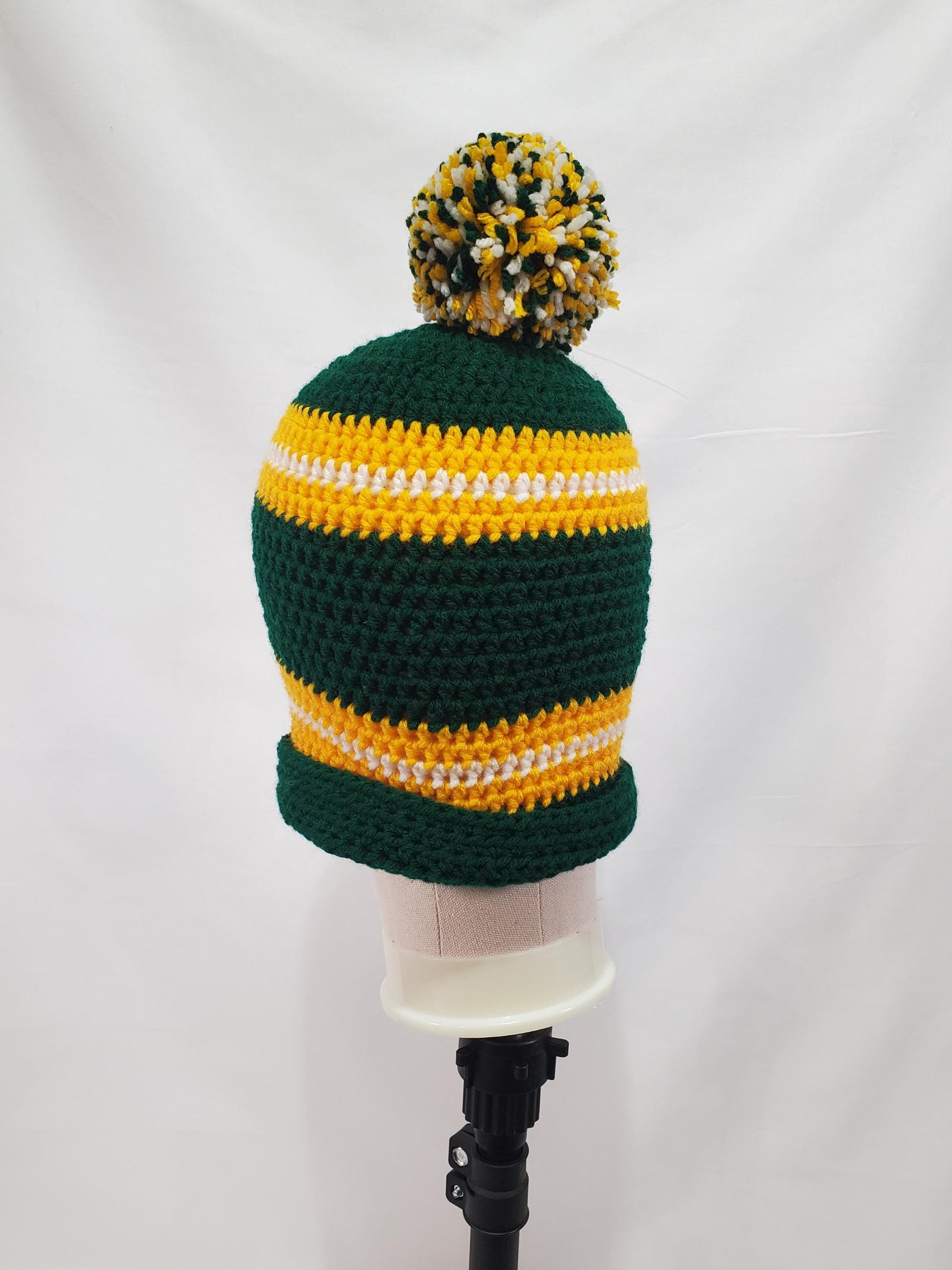 Green Bay Packers Inspired Crochet Beanie With A Pom, Adult Size Medium, Made From 100% Of Acrylic yarn