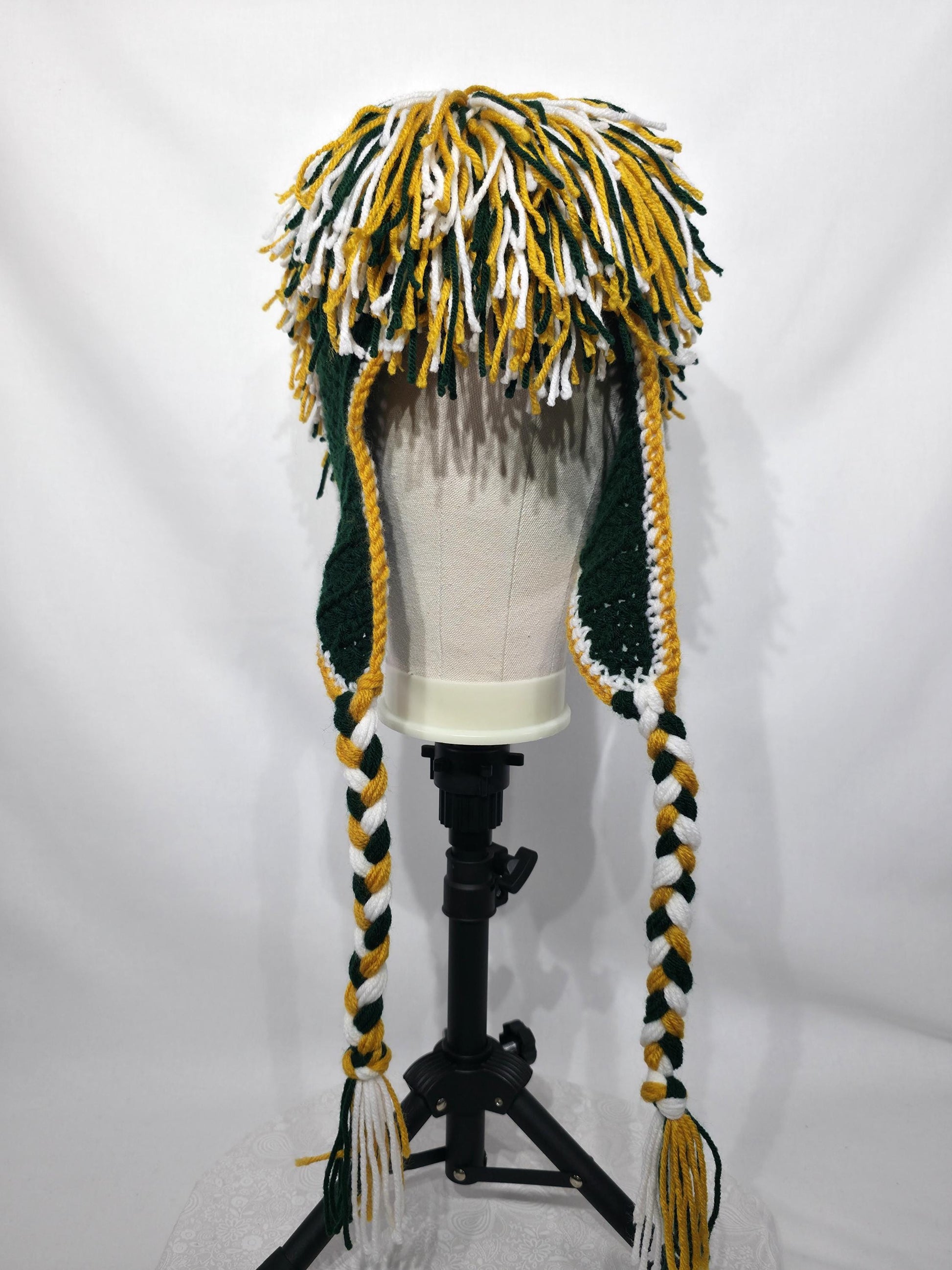 Green Bay Packers Inspired Crochet Mohawk Hat, Adult Med / Large