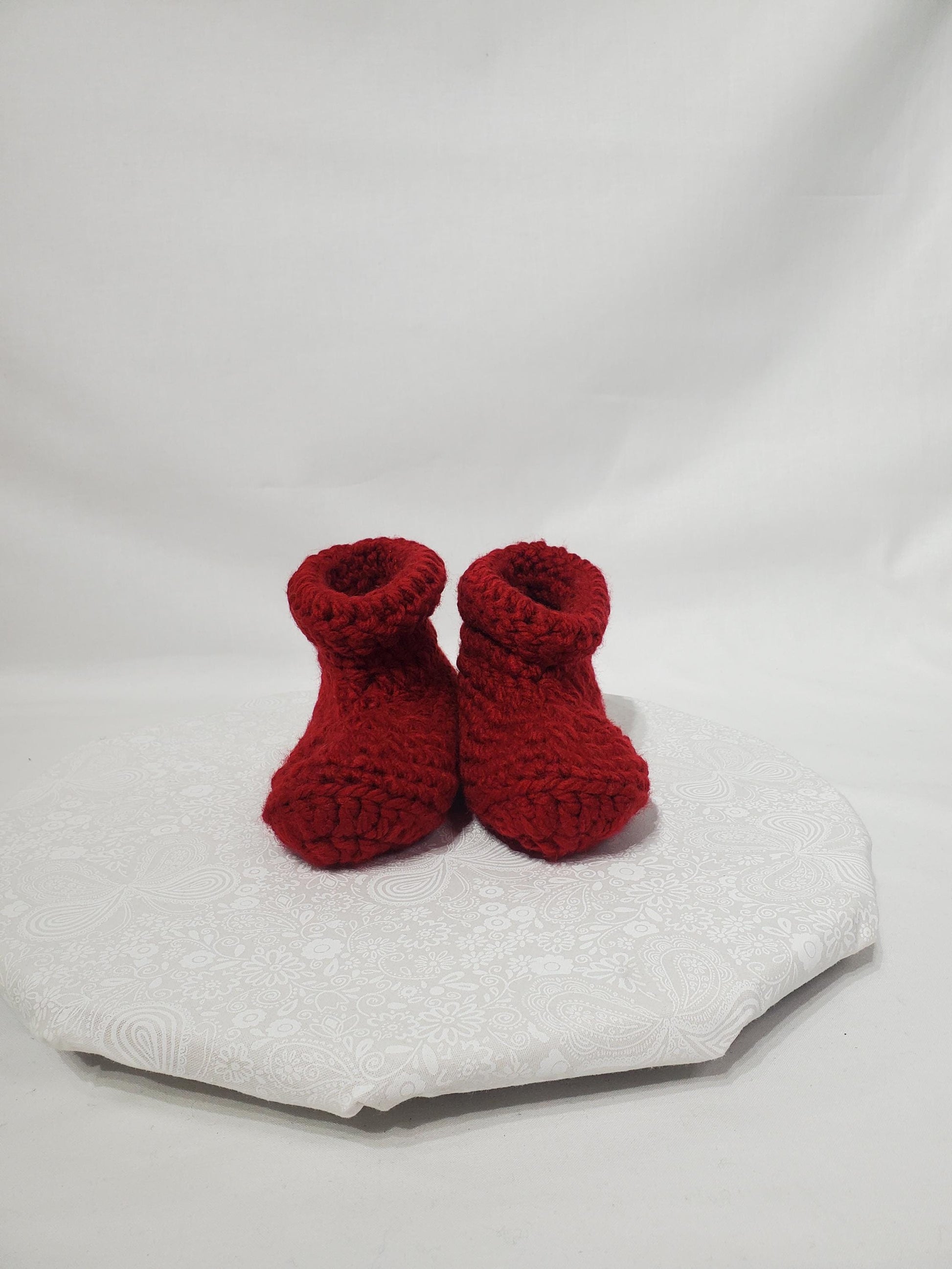 Crochet Children's Bootie, Maroon, Children's Size 1/2, Made With 100% Acrylic Chunky Yarn