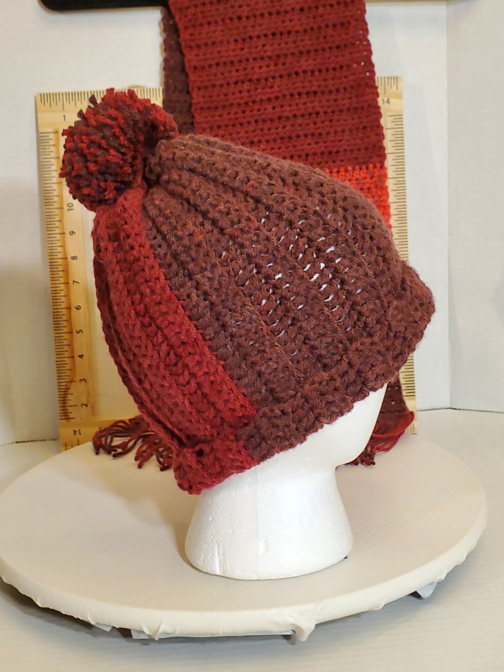 Item #90: Crochet Hat And Scarf Set, Various Reds, Size Toddler (1y-3y ), 3 1/2' Long, 8" Wide