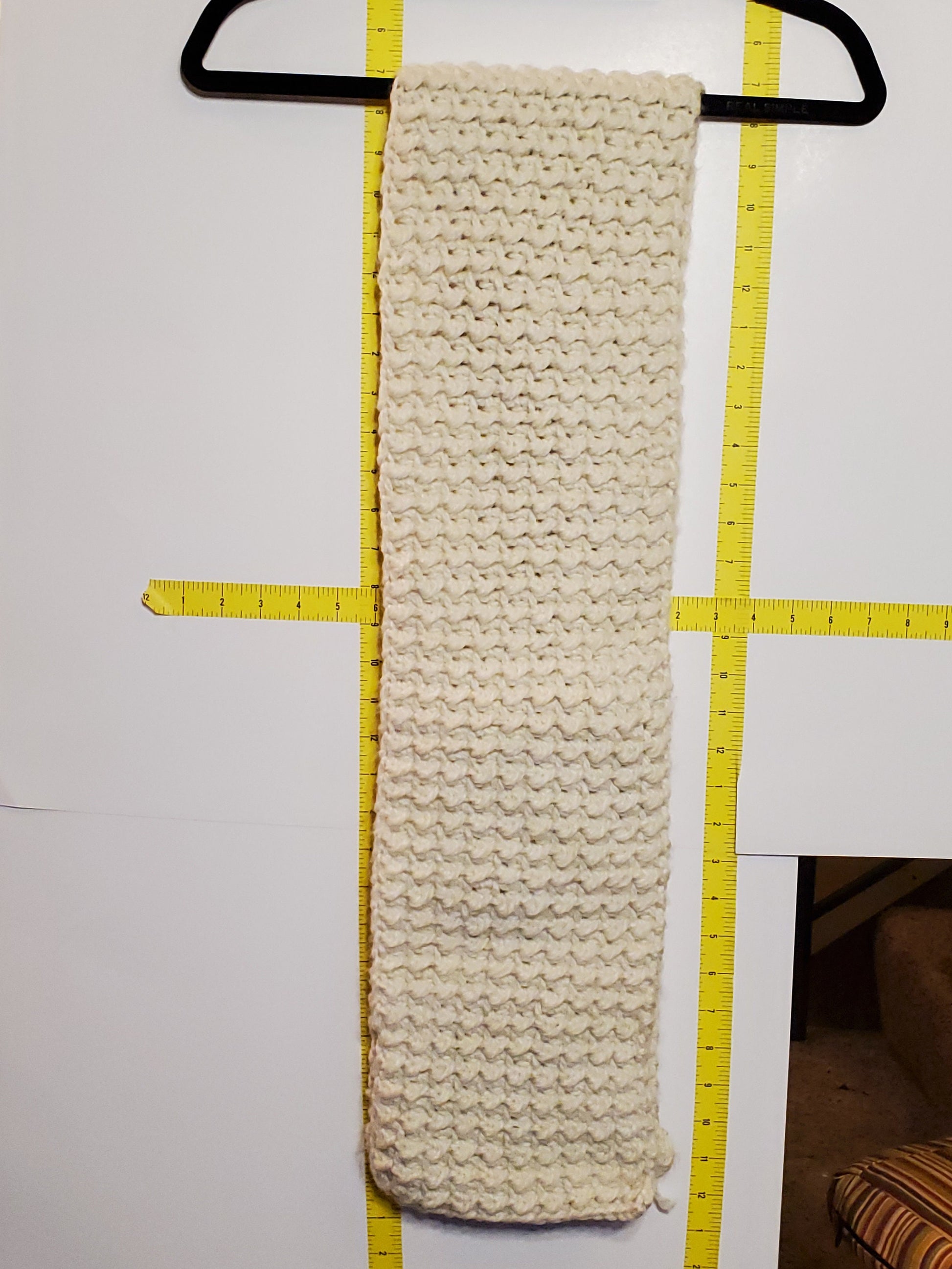Item #98: Crochet Scarf, Off White, 5' Long, 7 And A 1/2 Inches Wide, Made With Extra Soft And Chunky 100% Acrylic Yarn