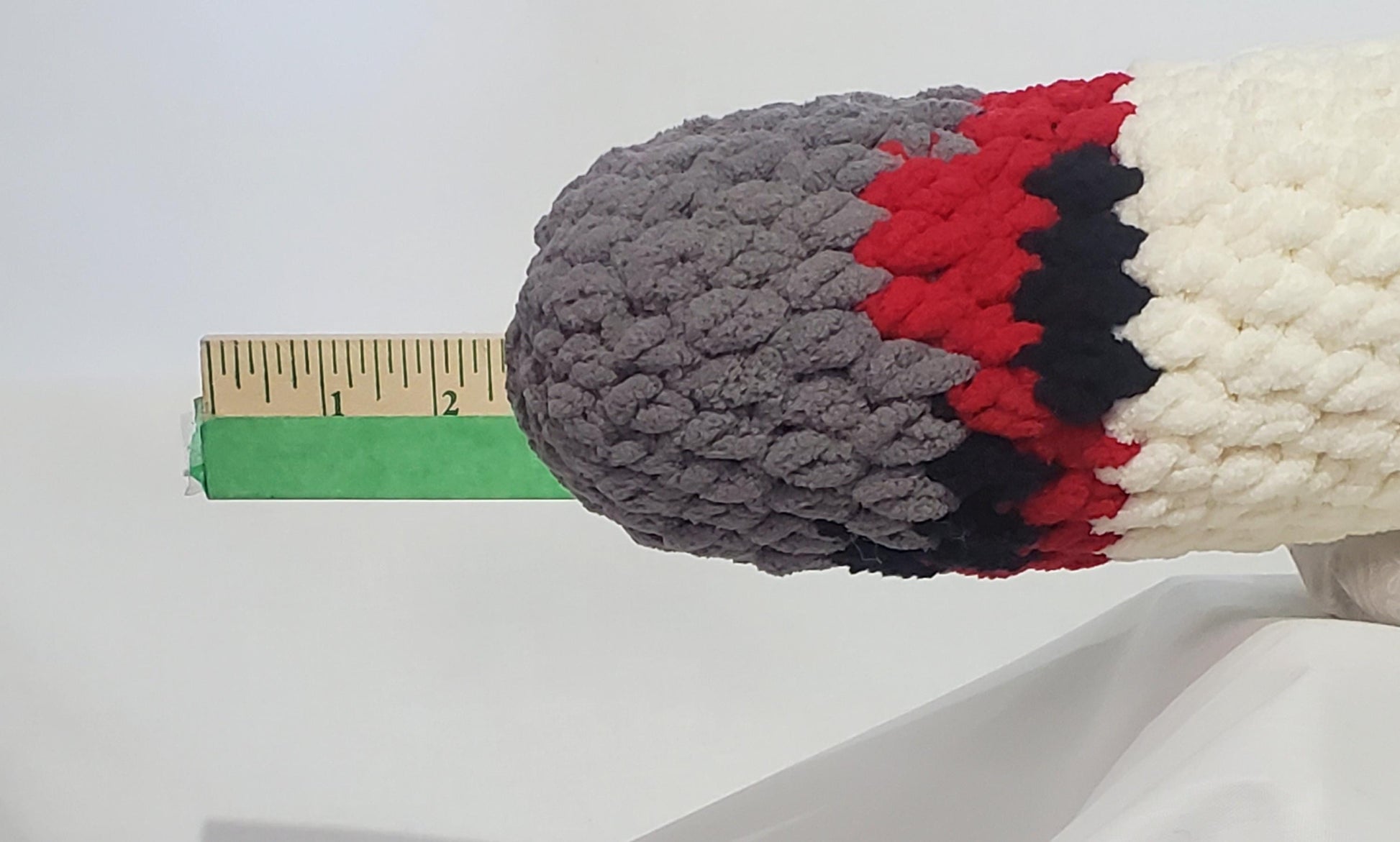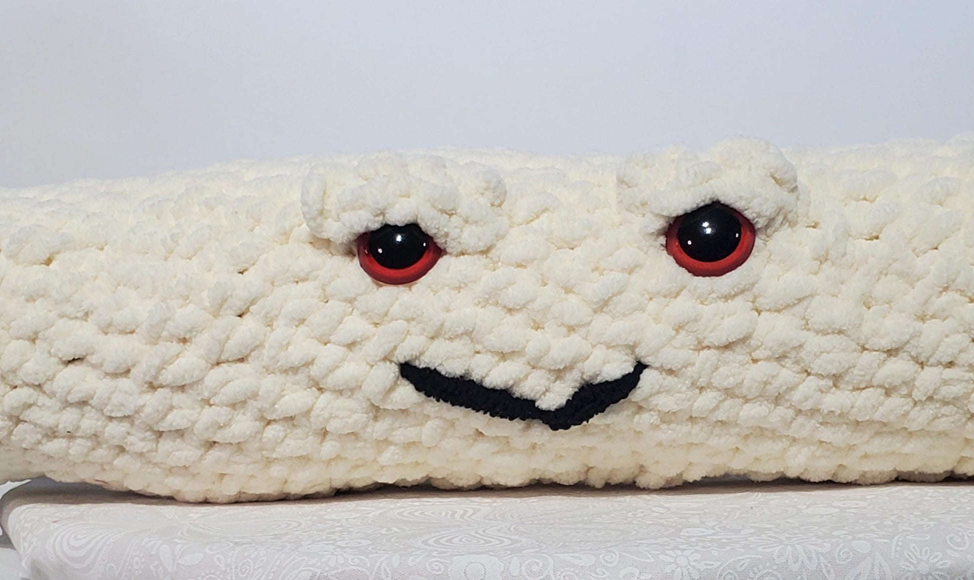 J10 - Crochet Joint / Doobie, White 100% polyester soft blanket yarn, has safety eyes, approx. 30"x 4", 14 oz