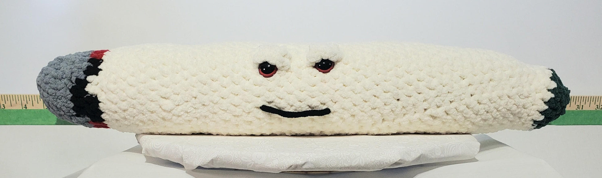J11 - Crochet Joint / Doobie, White 100% polyester soft blanket yarn, has safety eyes, approx. 26"x 5", 13 oz