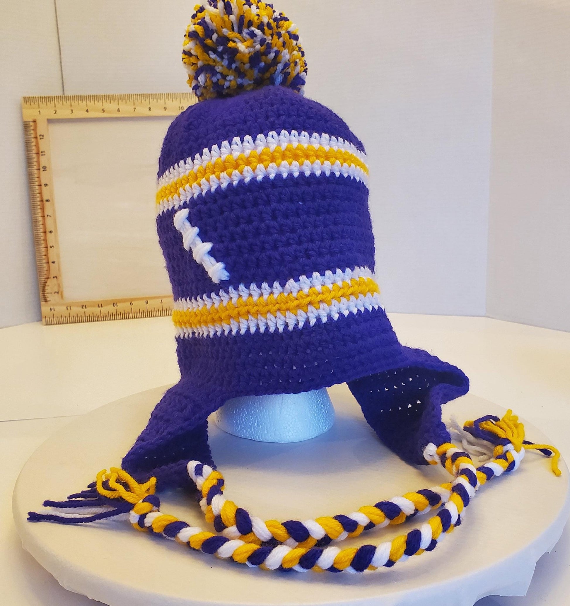 MN Vikings Inspired Crochet Ear Flap Hat