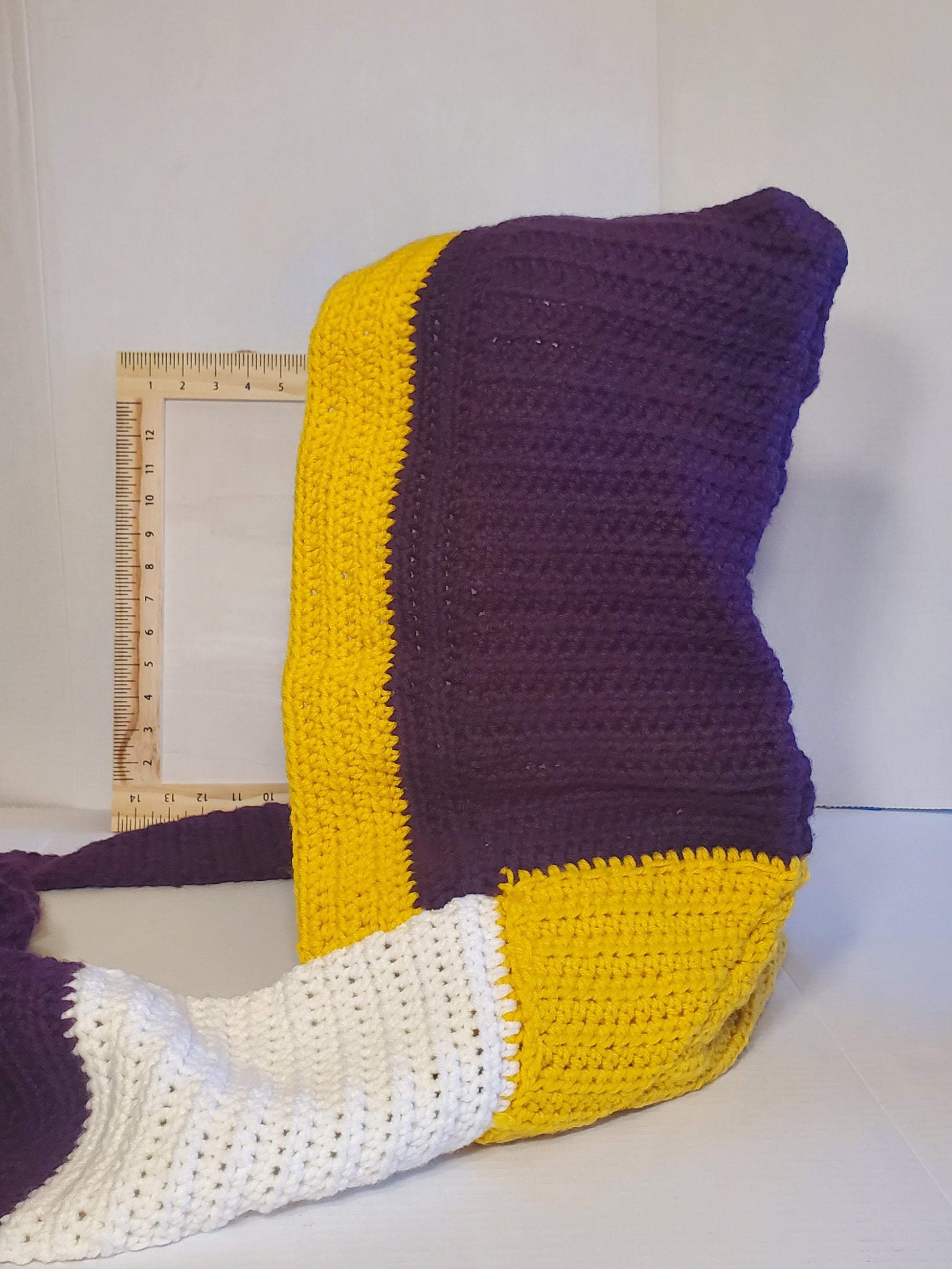 MN Vikings Inspired Crochet Hooded Scarf, Adult Sized, 5' Long 6.5" Wide, Made With 100% Acrylic Yarn