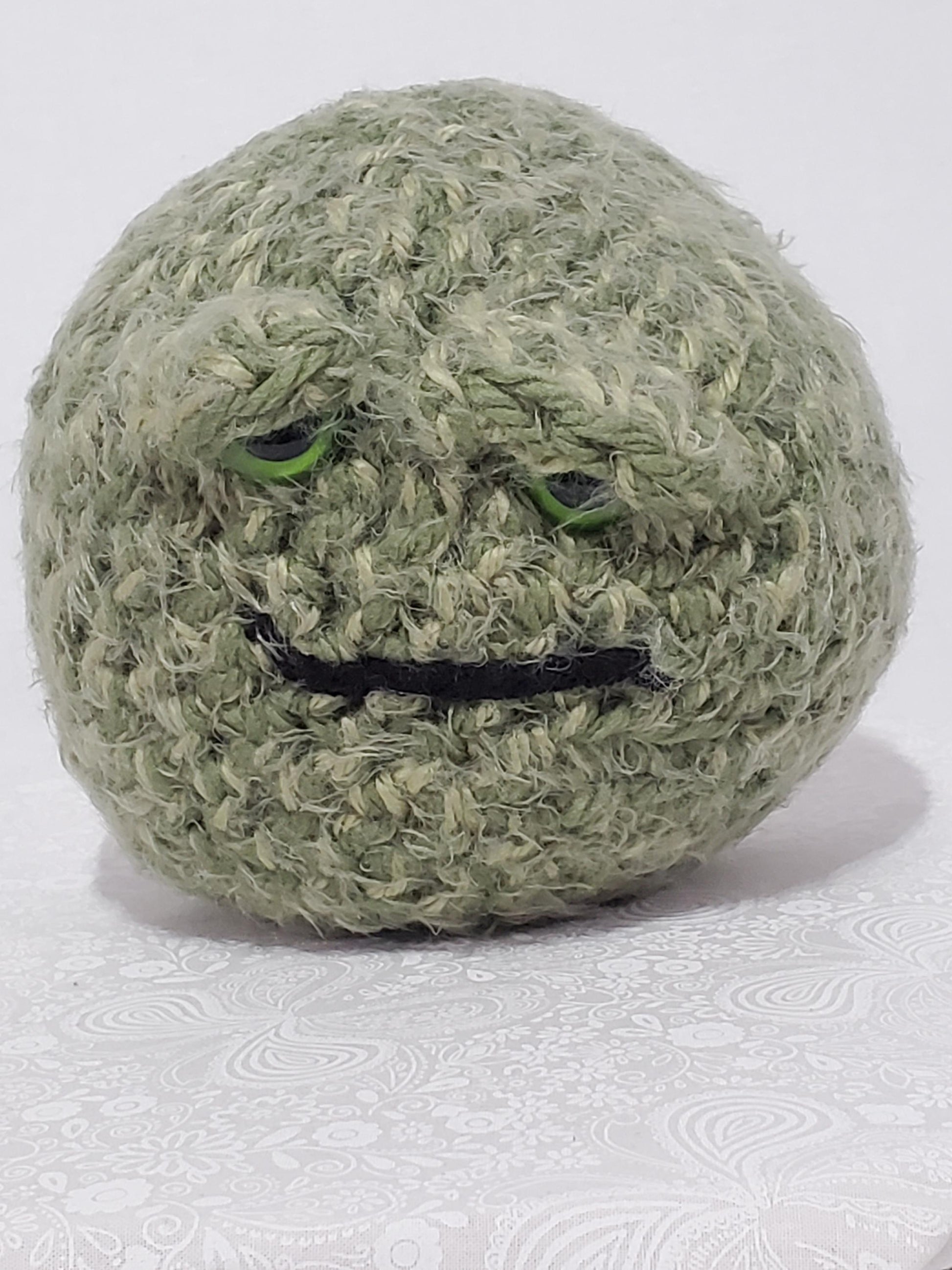 Crochet 420 Nugget made with acrylic and polyester yarn, safety eyes and polyester fiber fill, approx. 6x6, approx. 10 oz.