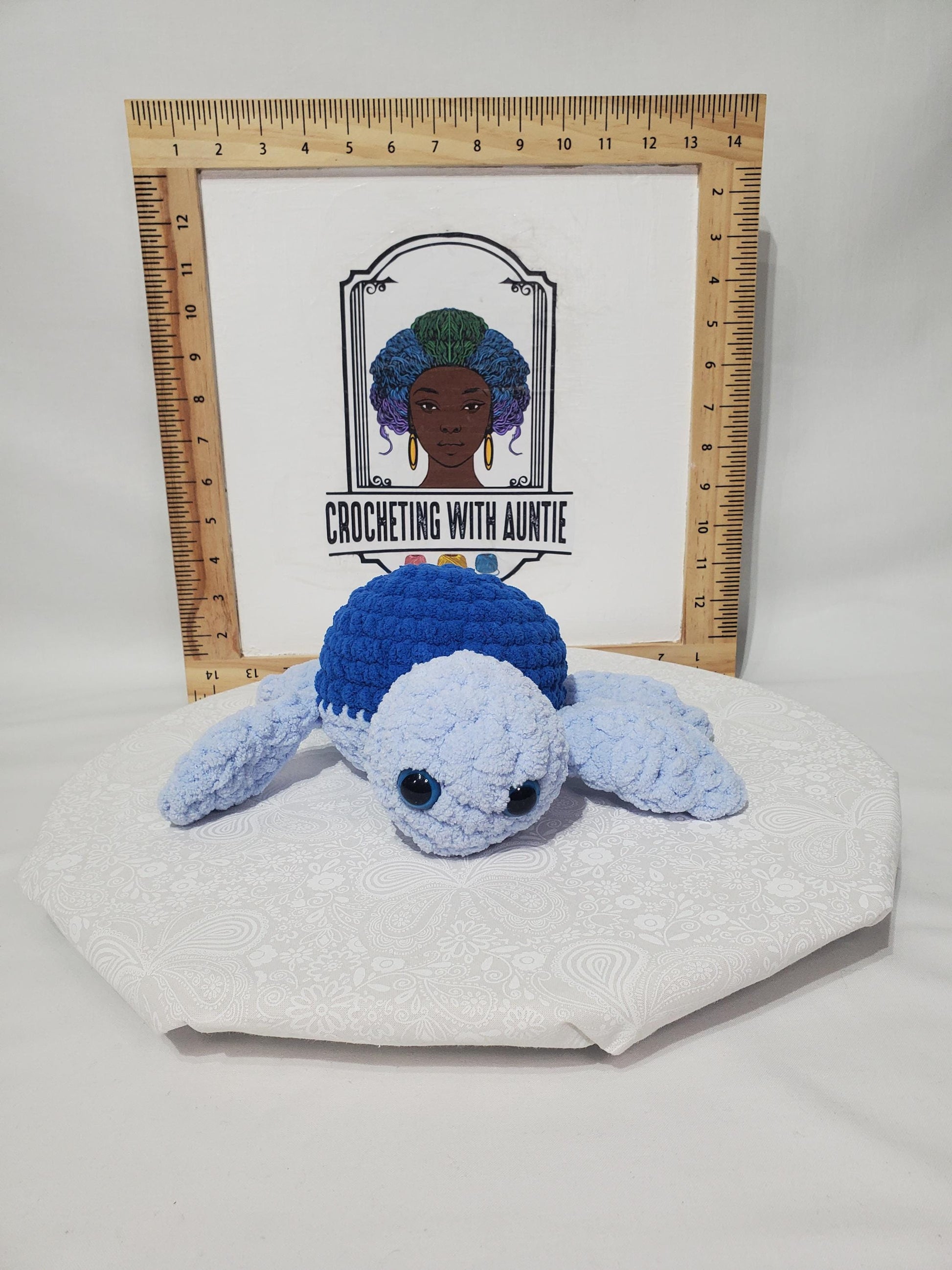 Crochet Turtle Plushy / Stuffy, blue, made with soft blanket yarn (100% Polyester) and safety eyes, approx. 8" x 5" x 9"