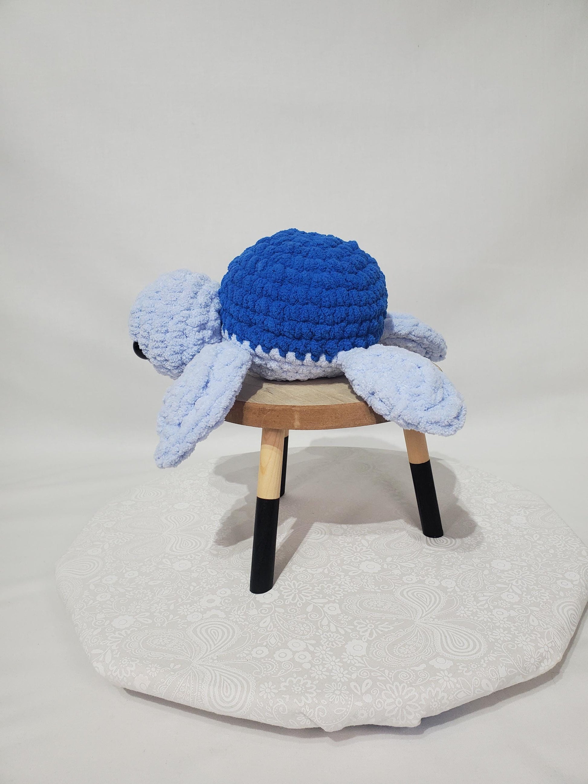 T21: Crochet Turtle Plushy / Stuffy, blue, made with soft blanket yarn (100% Polyester) and safety eyes, approx. 8" x 5" x 9"